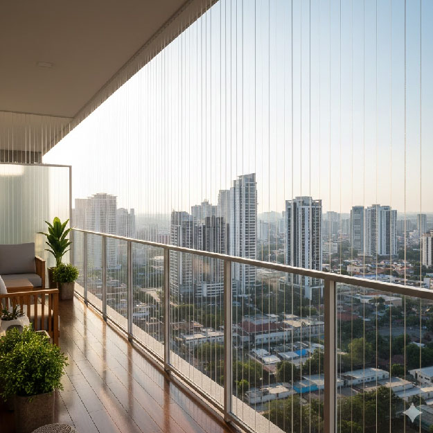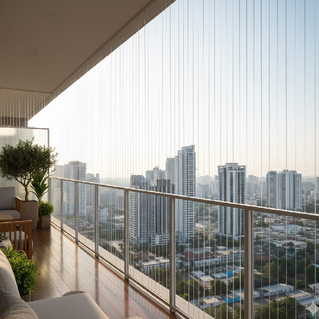 At Krishna Invisible Grills, we provide ultra-strong, rust-proof, child-safe invisible grill solutions that enhance balcony safety while keeping your view open, modern, and beautifully unobstructed.